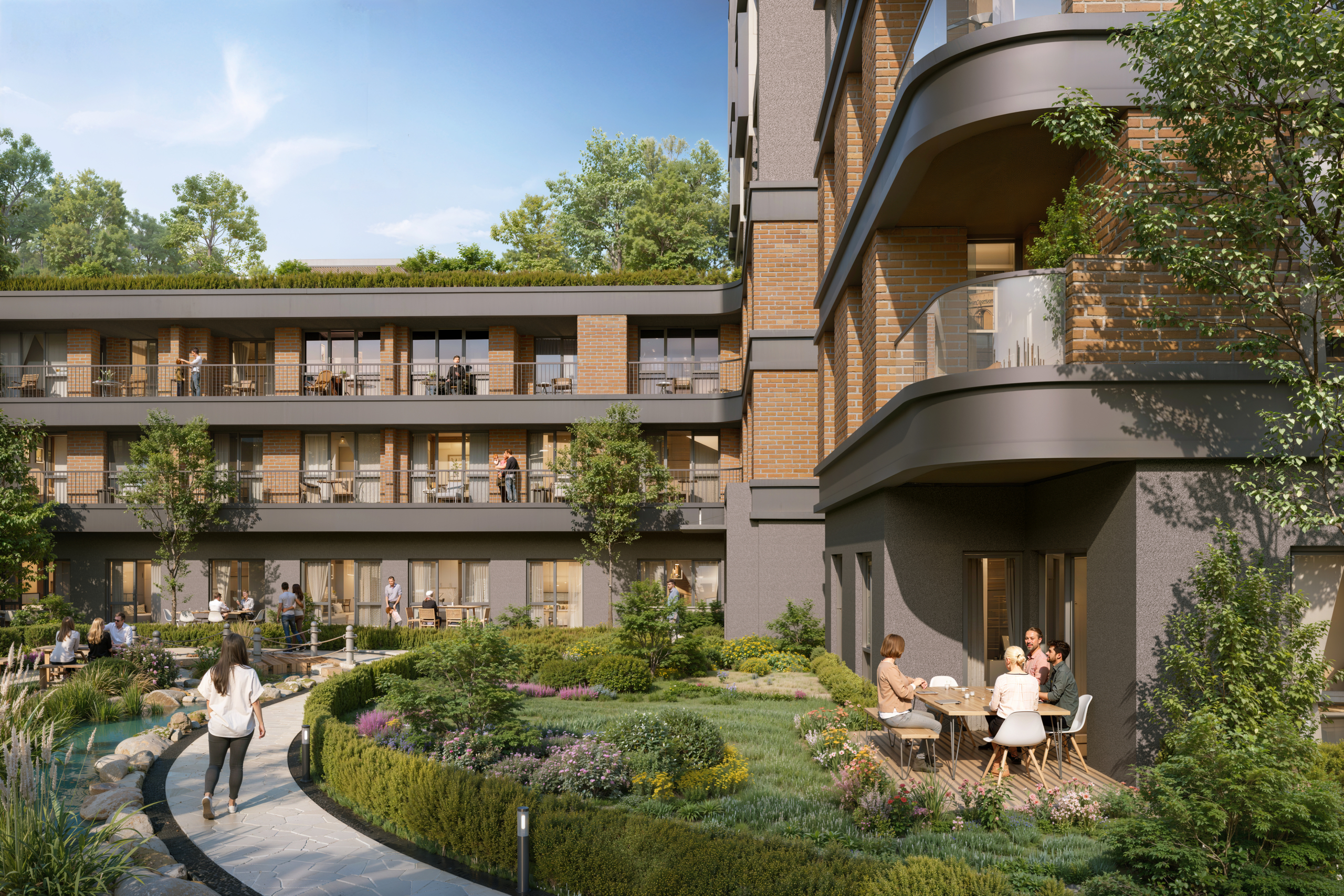 - Lush landscaped gardens with diverse plants, natural walking paths, and dedicated jogging tracks.